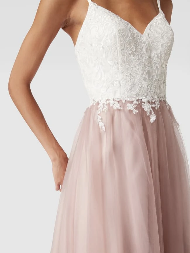 Luxuar Abendkleid Mit Kontrastbesatz – Rosé